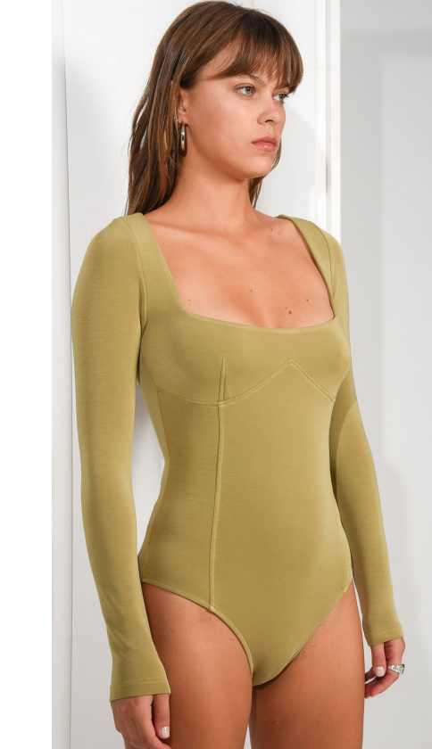 The Eclipse Bodysuit, with its flattering square neckline and long sleeves, adds a touch of elegance. Made from a soft, stretchy fabric, it offers all-day comfort while adapting beautifully to every body. It features an elastic design for a secure fit, making it ideal for pairing with high-waisted pants or skirts.