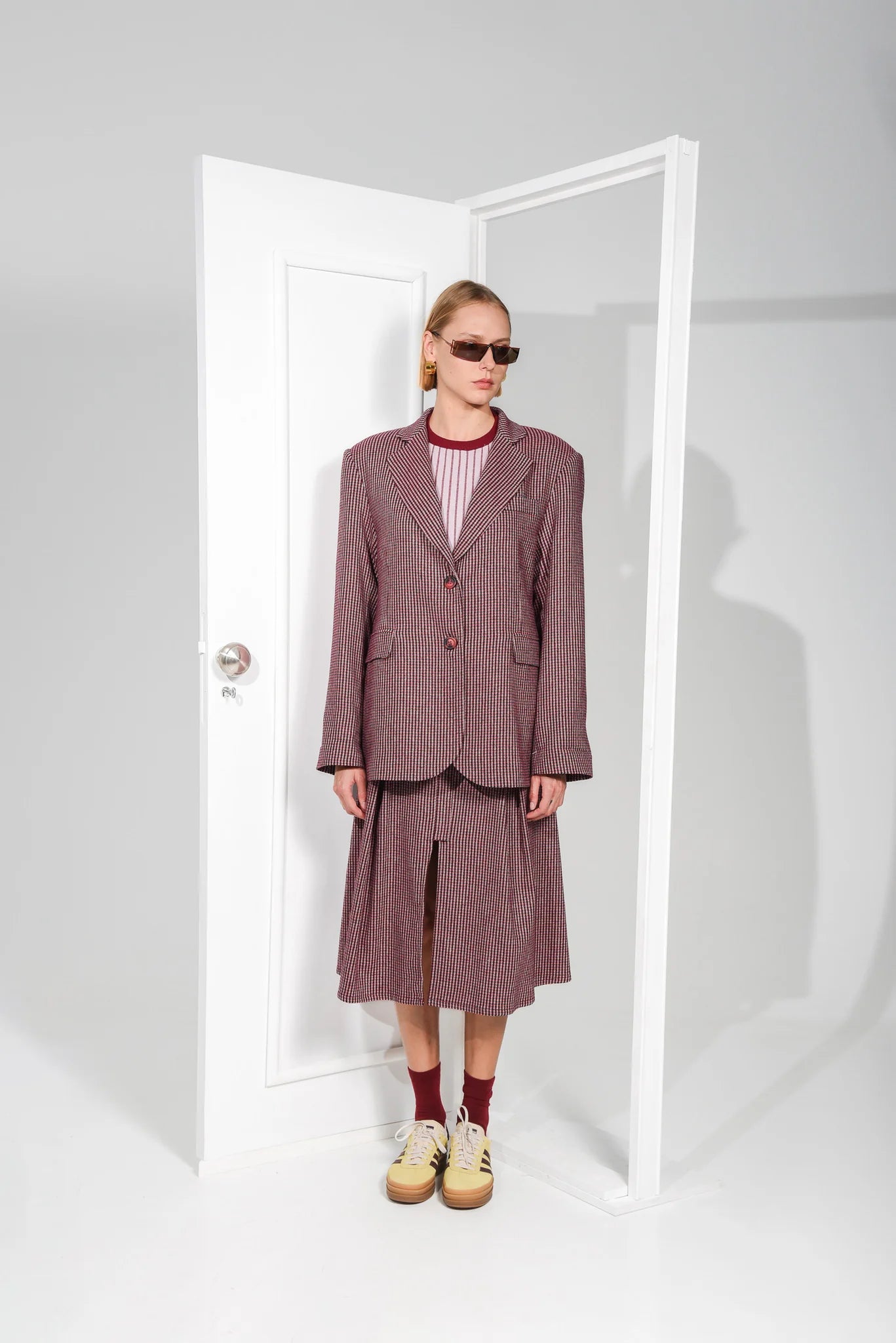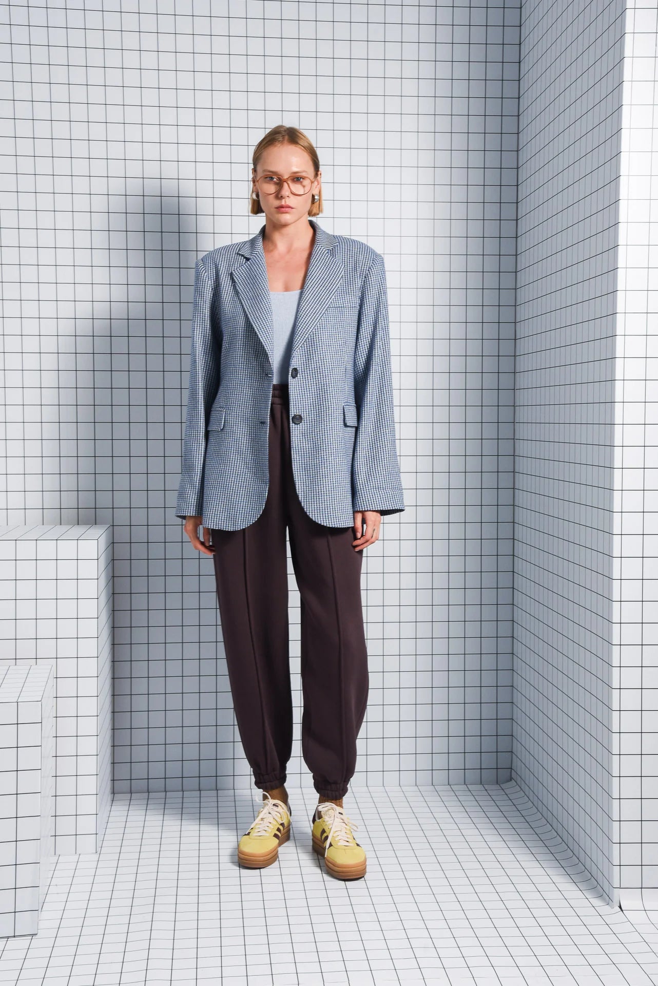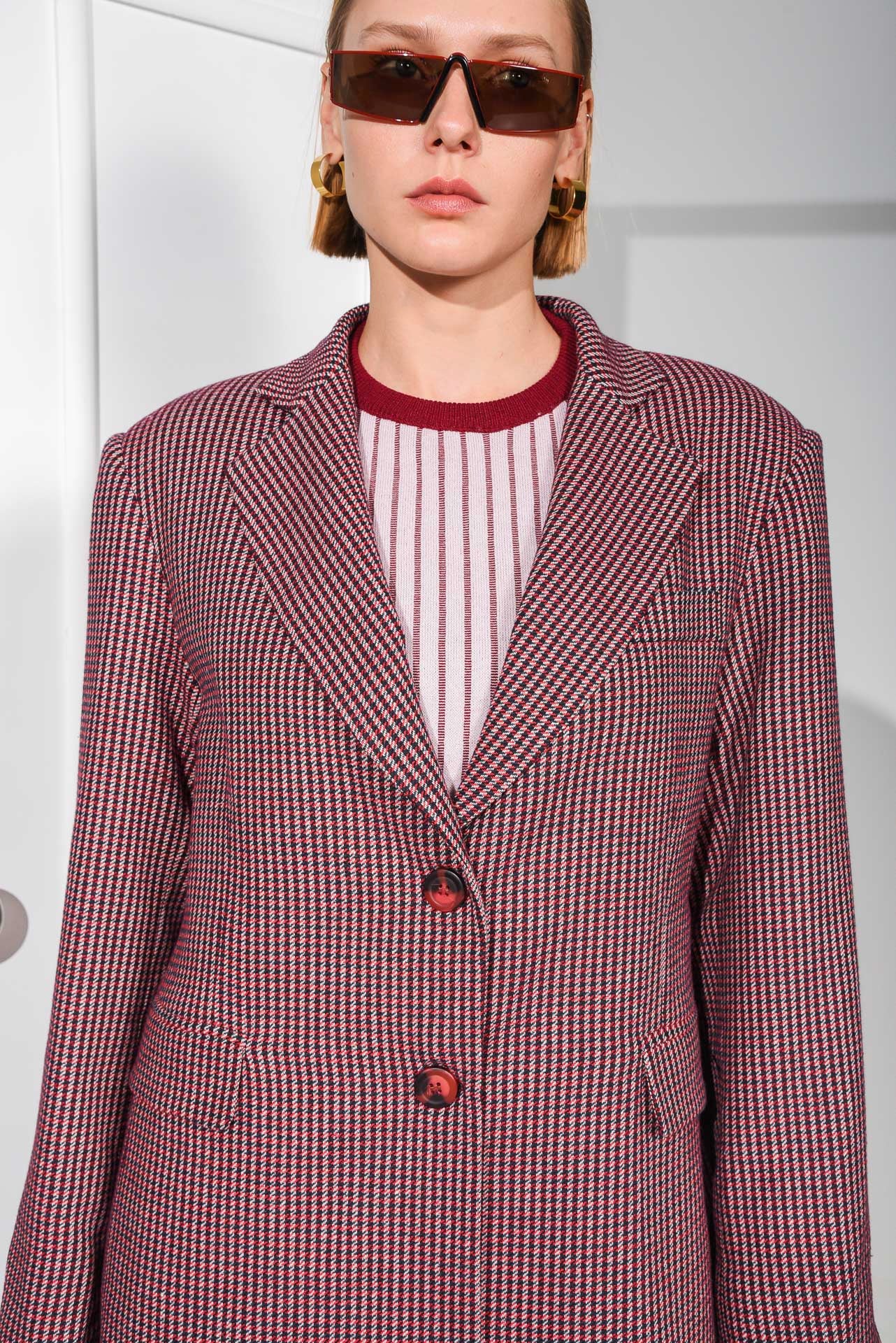 Elevate your everyday look with the Horizon blazer. This oversized houndstooth blazer features pronounced shoulders, a classic lapel and a two-button closure. Its relaxed fit and timeless design make it perfect for layering over any outfit.