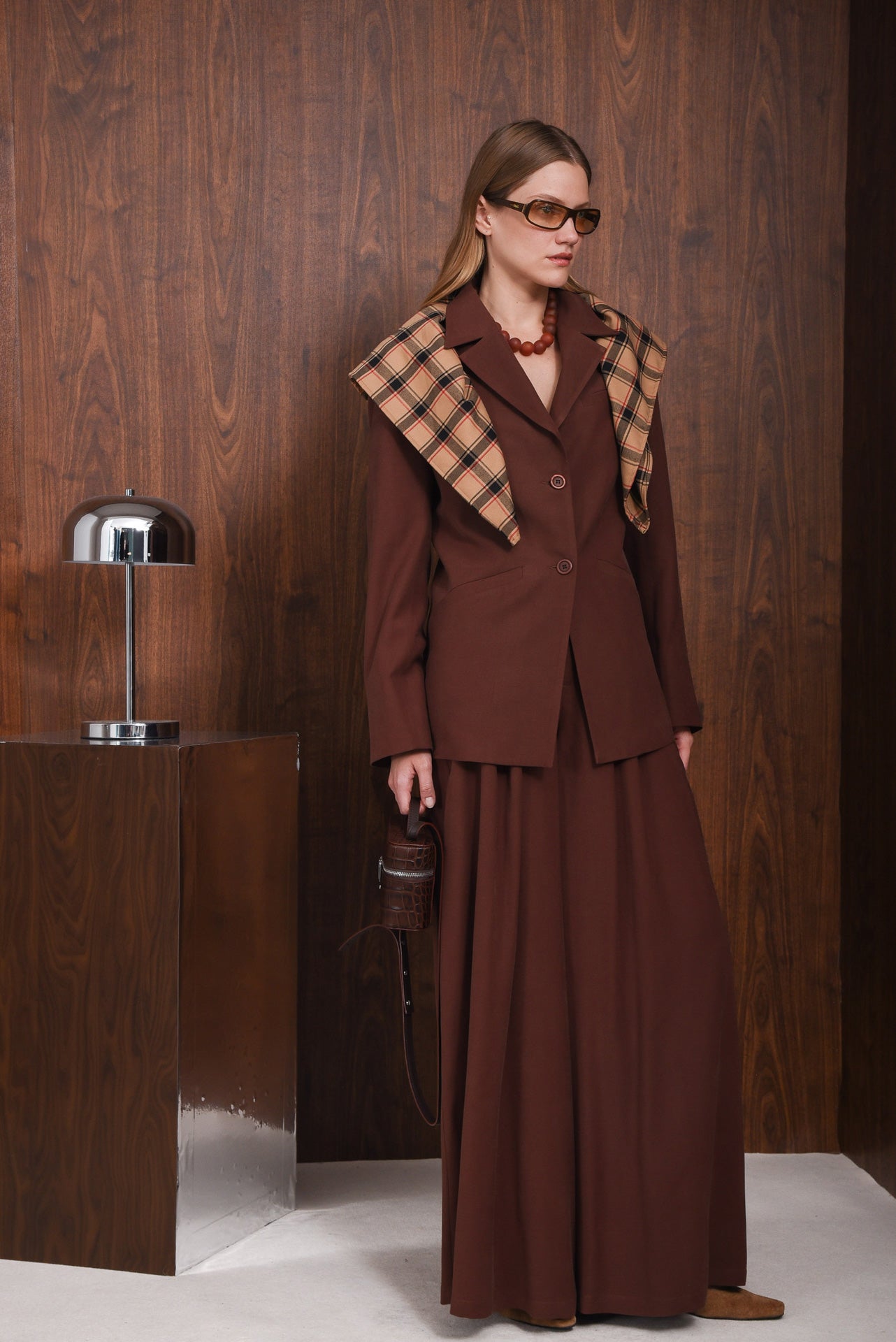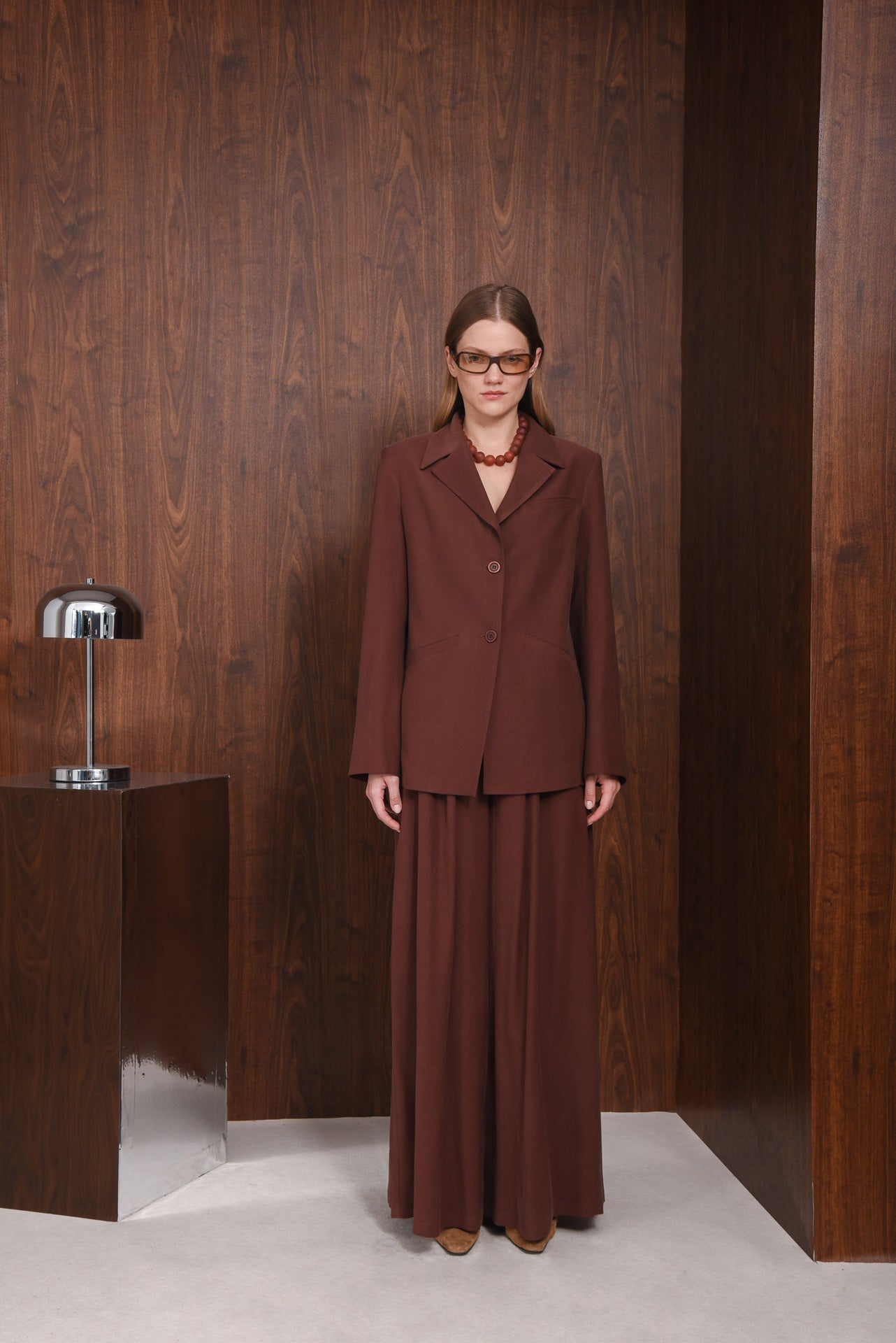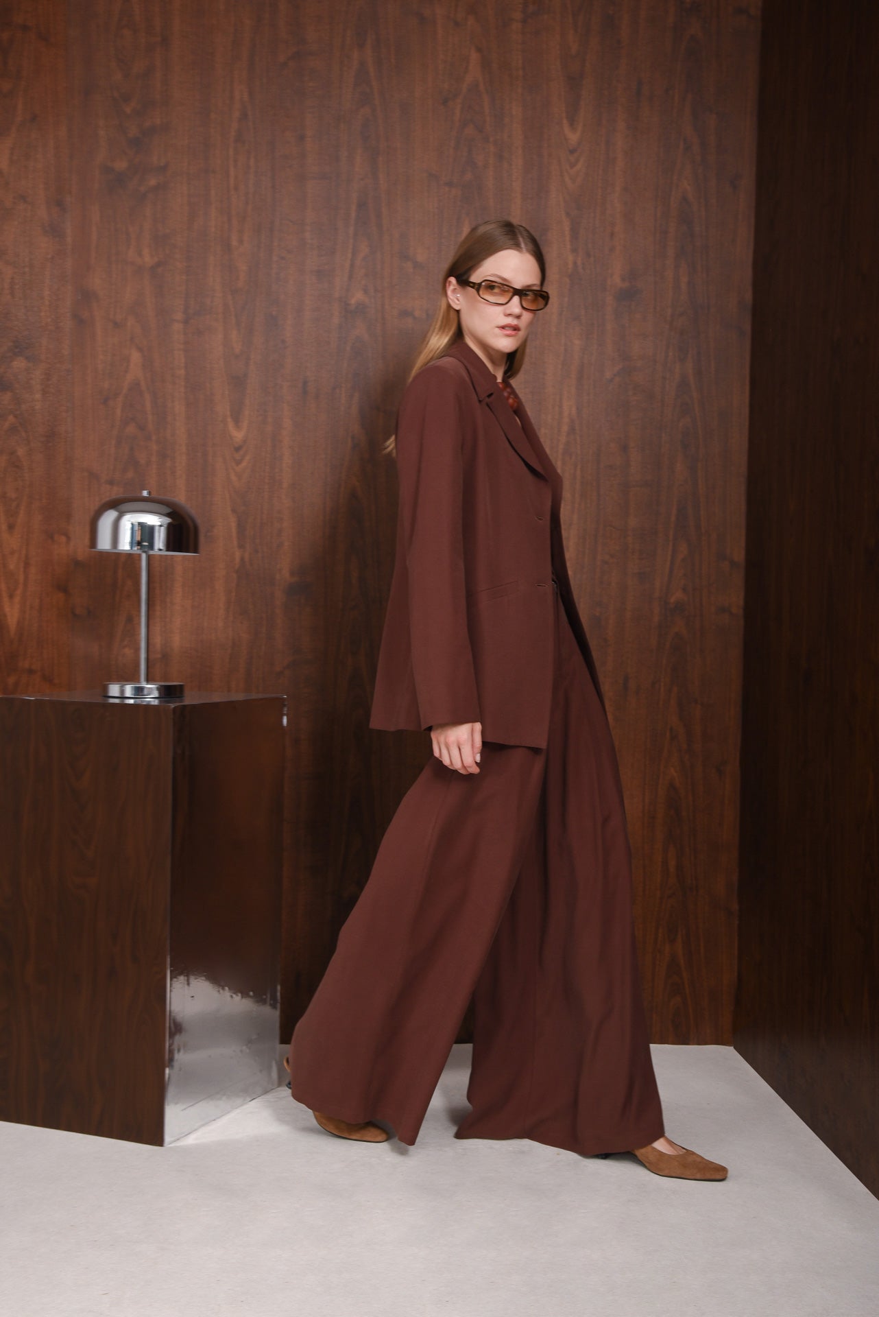 The Higher Self pants are high-waisted with a wide, flowing leg for a relaxed yet elegant look. Designed with front pleats, belt loops, and back patch pockets, they offer comfort, versatility, and timeless style.
