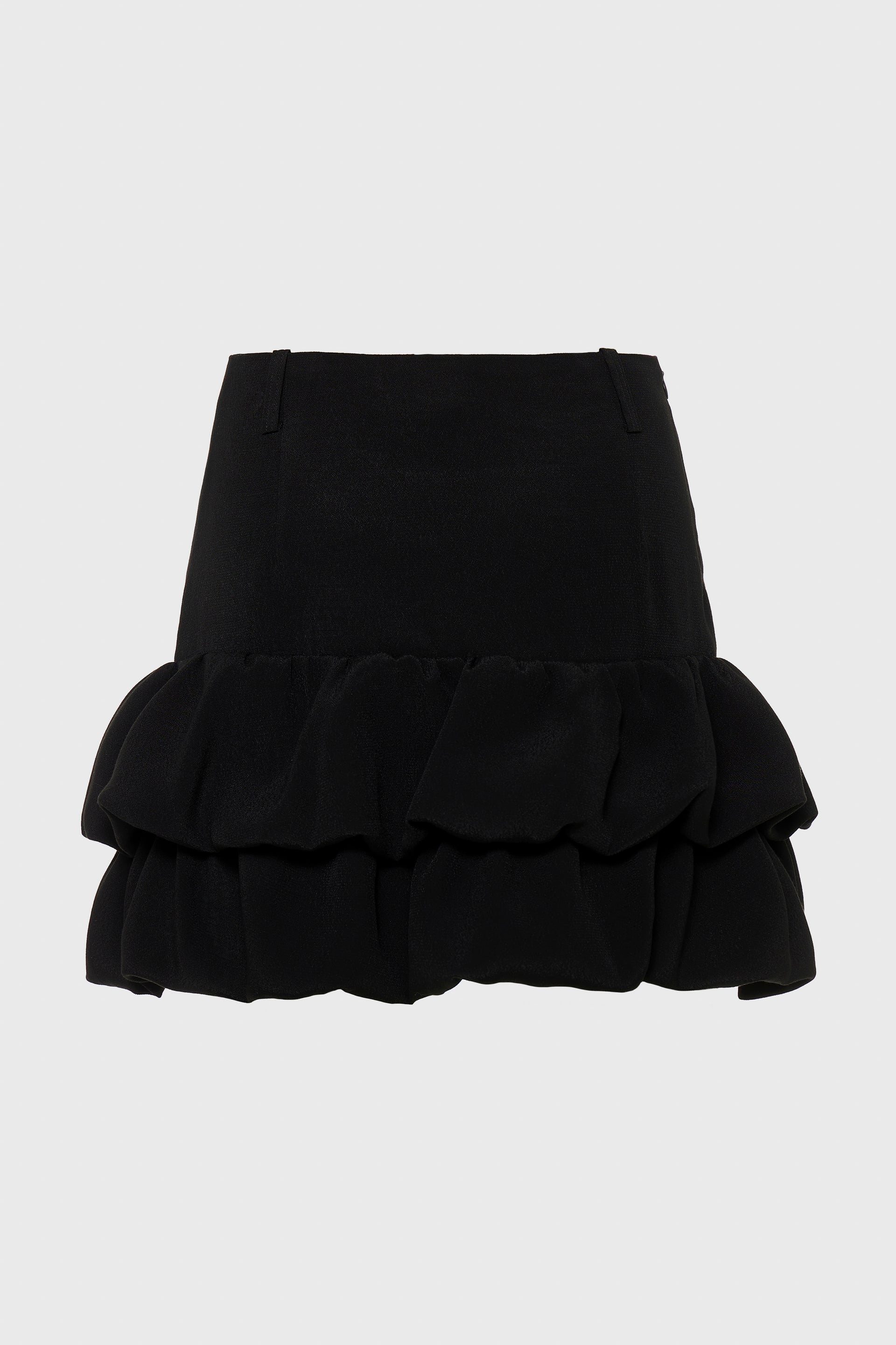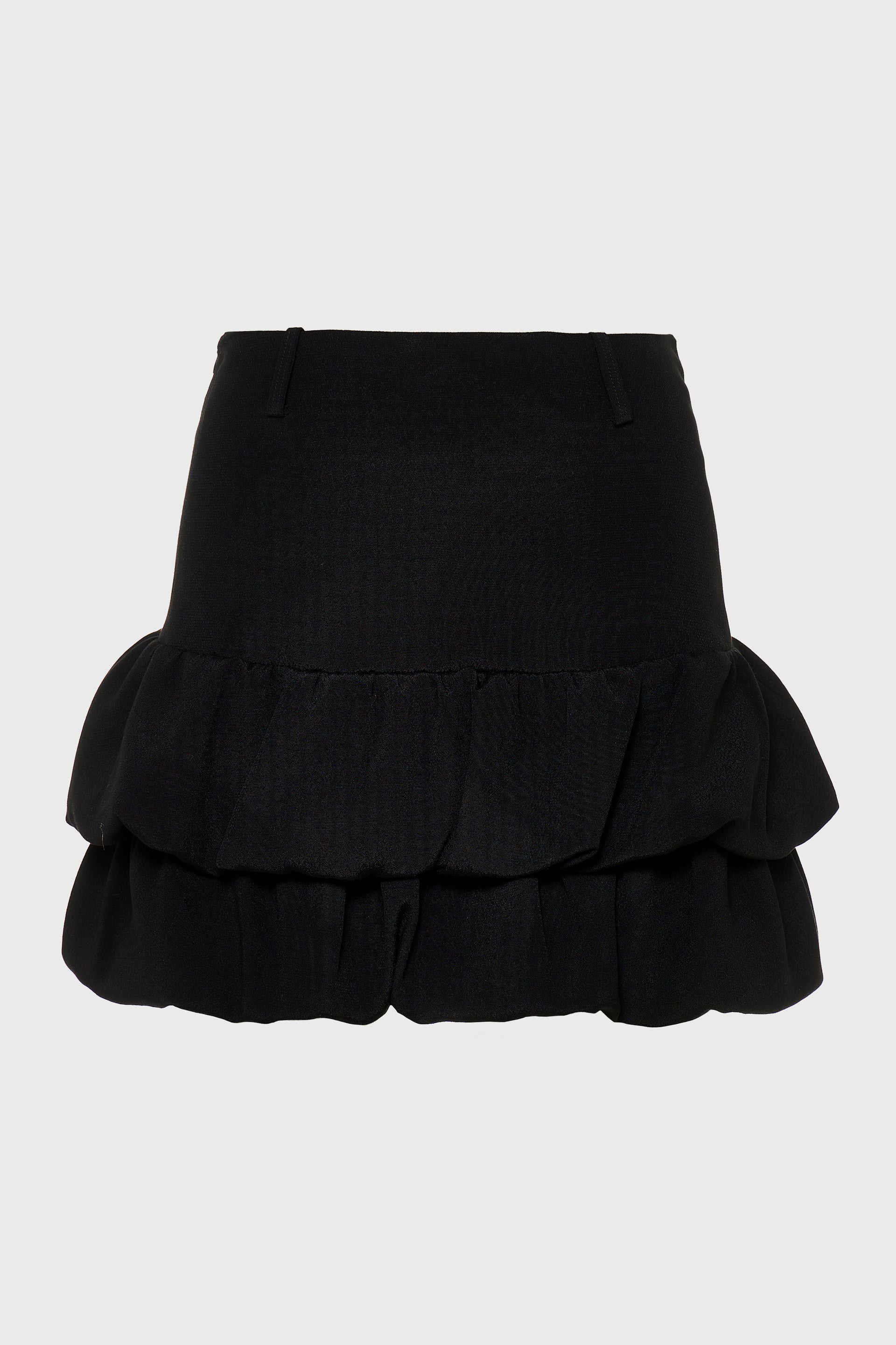 Introducing the Siren Balloon Mini Skirt, a standout piece designed for maximum impact and feminine flair. In timeless black, this skirt captivates with its structured yet playful silhouette.