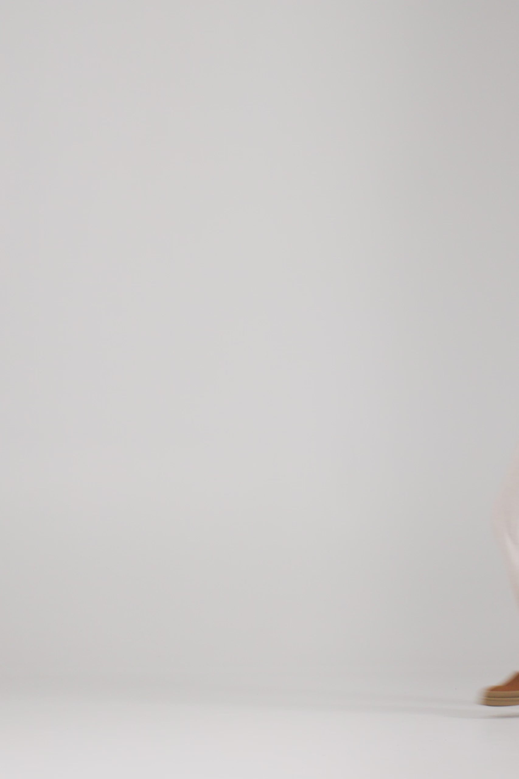 Pants made from soft, fluffy fabric, featuring ribbed panels along the side seams for a subtle, elevated detail. It features an elasticated waistband and has a comfortable fit that gently hugs the silhouette, allowing full freedom of movement. The relaxed cut and small slits at the hems enhance both comfort and flow. It perfectly pairs with the matching tops from the same range for a refined, cozy ensemble.