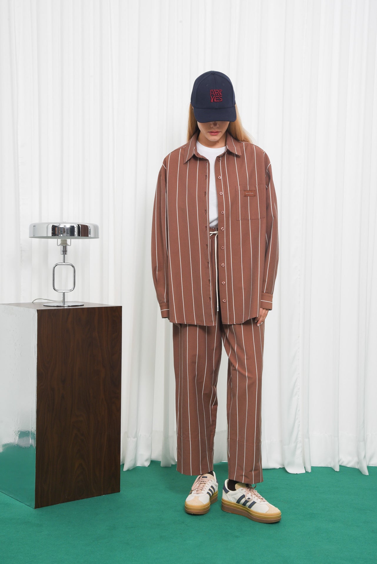 Soulful Pants are relaxed striped pants designed for all-day comfort and style. Featuring a straight-leg fit, elastic waistband with adjustable drawstring, and practical side pockets. The vertical stripes create a flattering silhouette, while the soft fabric ensures easy movement. Perfect to pair with the matching shirt or a simple tee for versatile looks.